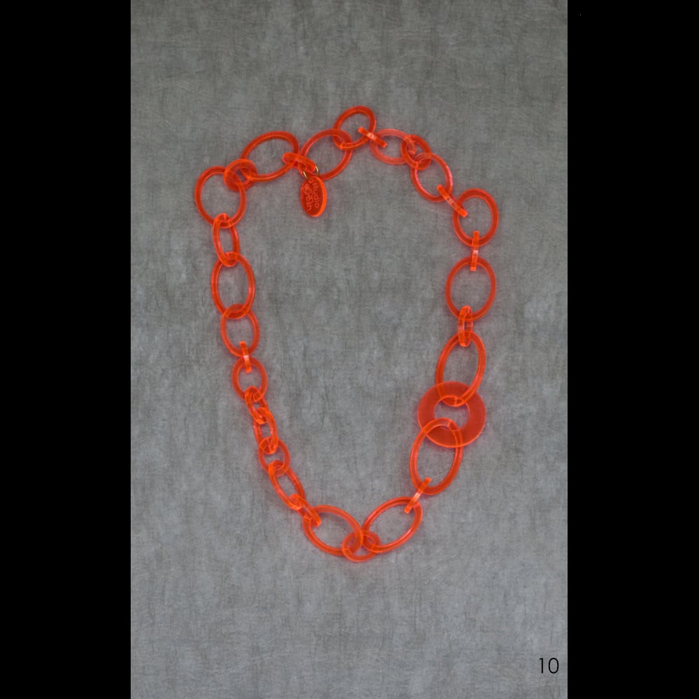 Each of these colourful neon necklaces has its one-off combination of colors from clear and/or frosted acrylic. Designer Elleke van Gorsel lasered them out of vibrant colored acrylics also used for her environmental conscious collection From Junk to Jewelry. consisting of brooches, earrings and necklaces.